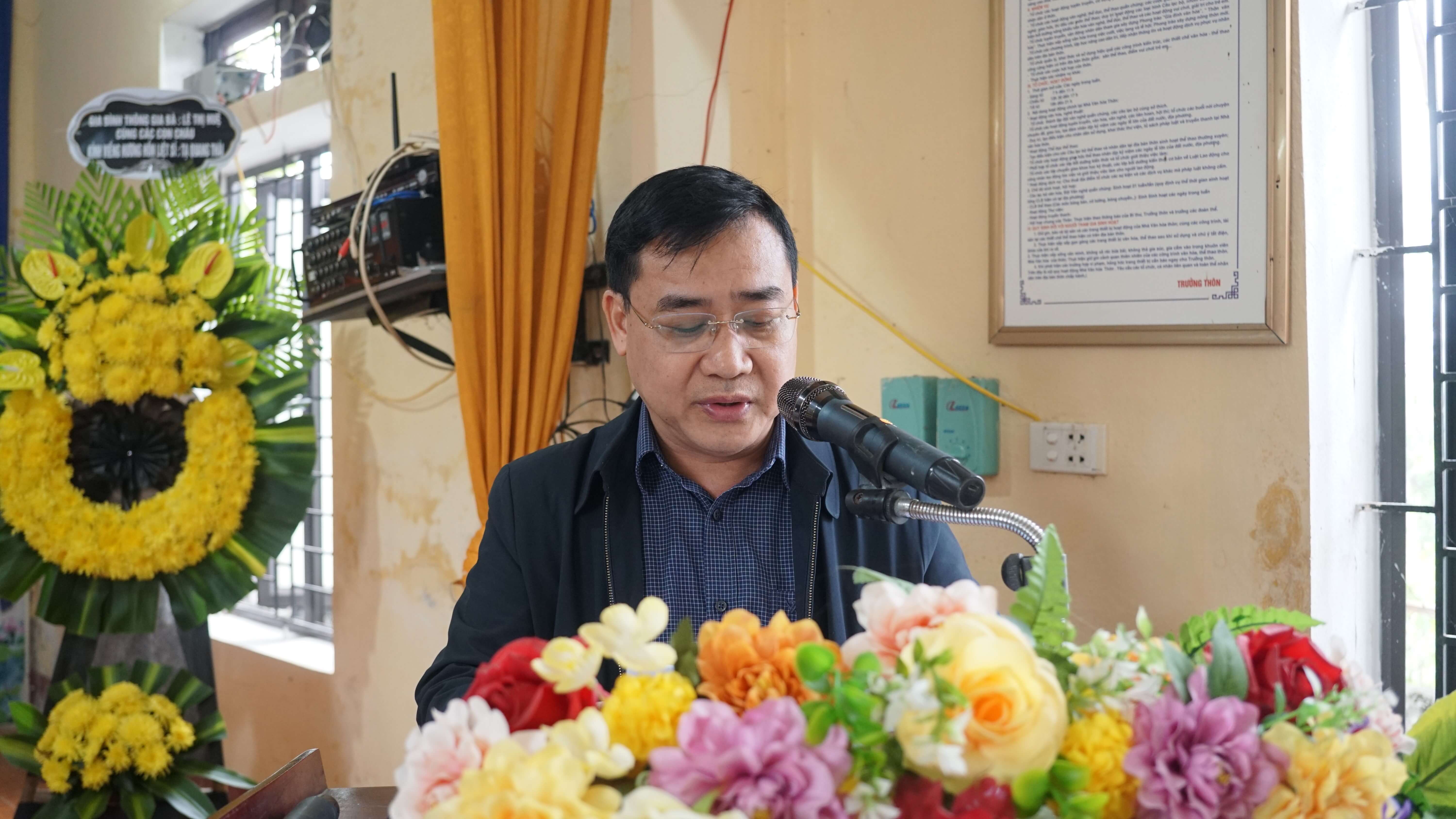 Đồng chí Mai Xuân Thế - Phó Chủ tịch UBND phường đọc tiểu sử cuộc đời hoạt động cách mạng của liệt sĩ Tạ Quang Thái